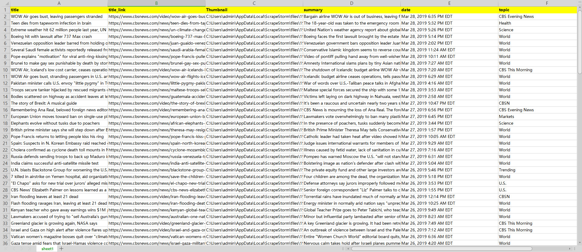 2018-06-07 14:33:50This tutorial will show you how to scrape latest world news from CBS NEWS with ScrapeStorm. No Programming Needed. Visual Operation.